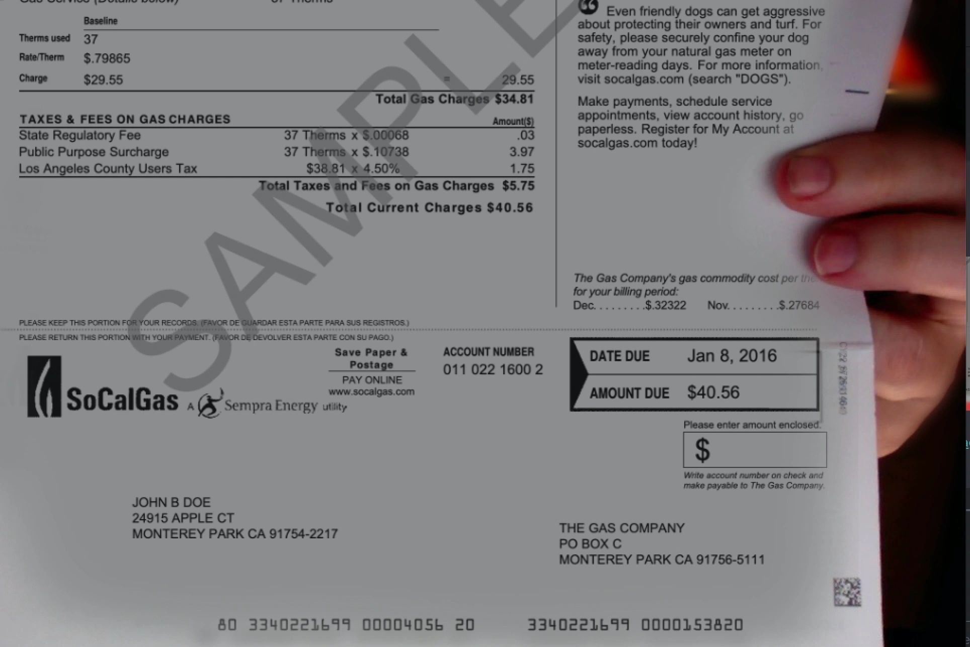 EXAMPLES: current utility, cable, or phone bill, residential lease, rental agreement, mortgage statement, rent receipt, home owner's or renter's insurance documentation, LA County property tax bill. Need more examples? Click here.